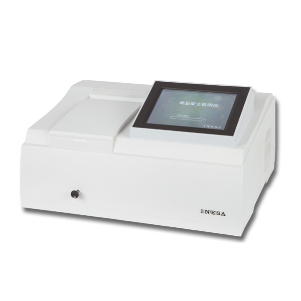 ,酶催化神經(jīng)傳導(dǎo)代謝產(chǎn)物(乙酰膽堿)水解,其水解產(chǎn)物與顯色劑反應(yīng),產(chǎn)生黃色物質(zhì),用分光光度計測定412nm下吸光度隨時間的變化值,計算出抑制率,通過抑制率可以判斷出樣品中是否含有有機(jī)磷或氨基甲酸酯類農(nóng)藥的殘留?梢詫崿F(xiàn)有機(jī)磷及氨基甲酸酯類農(nóng)藥殘留量的現(xiàn)場快速檢測。